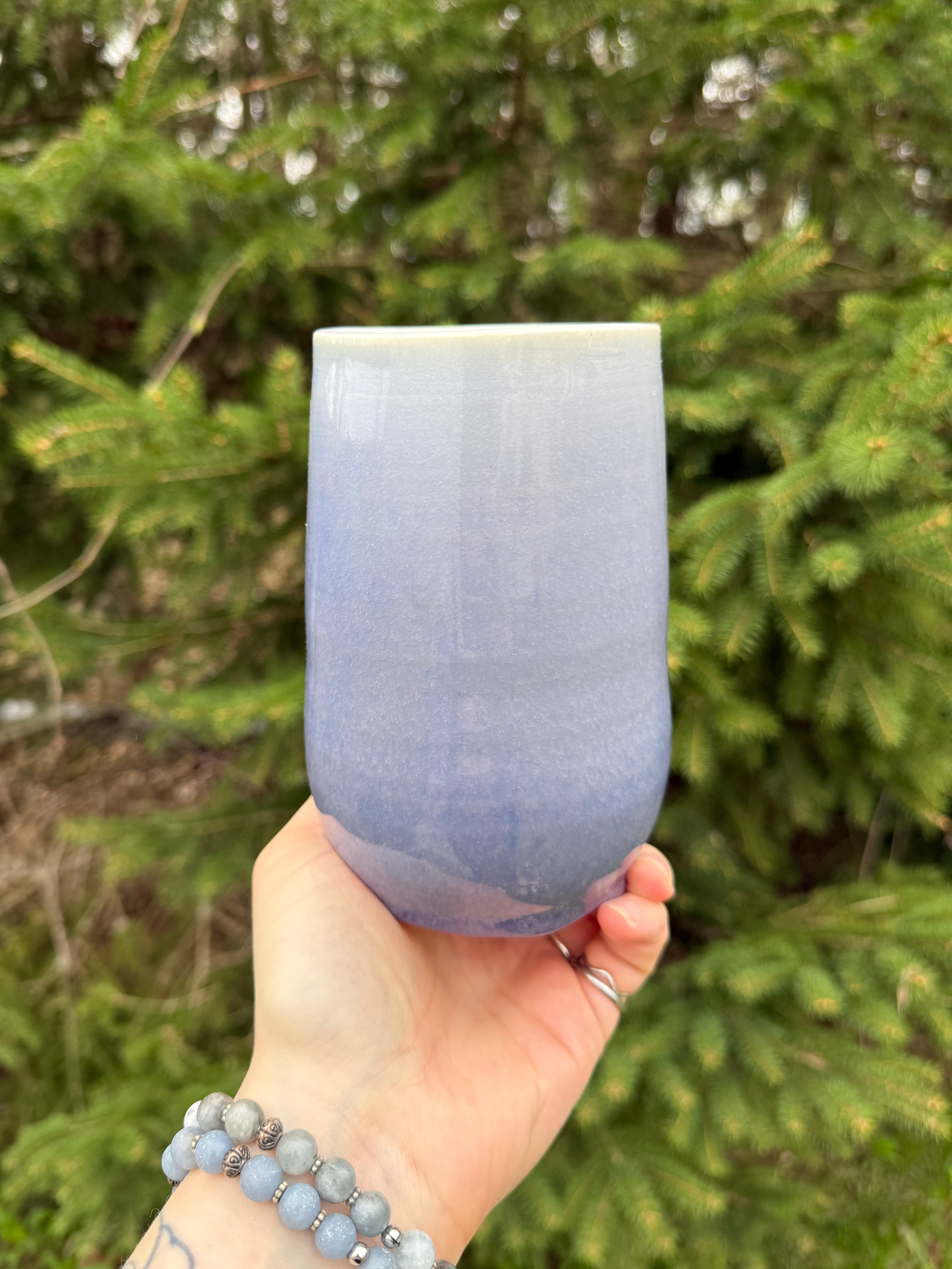 A vase glazed in a gorgeous super light purple with hints of pink and blue. It sits flat and has little drips coming off the bottom for a super fun effect.