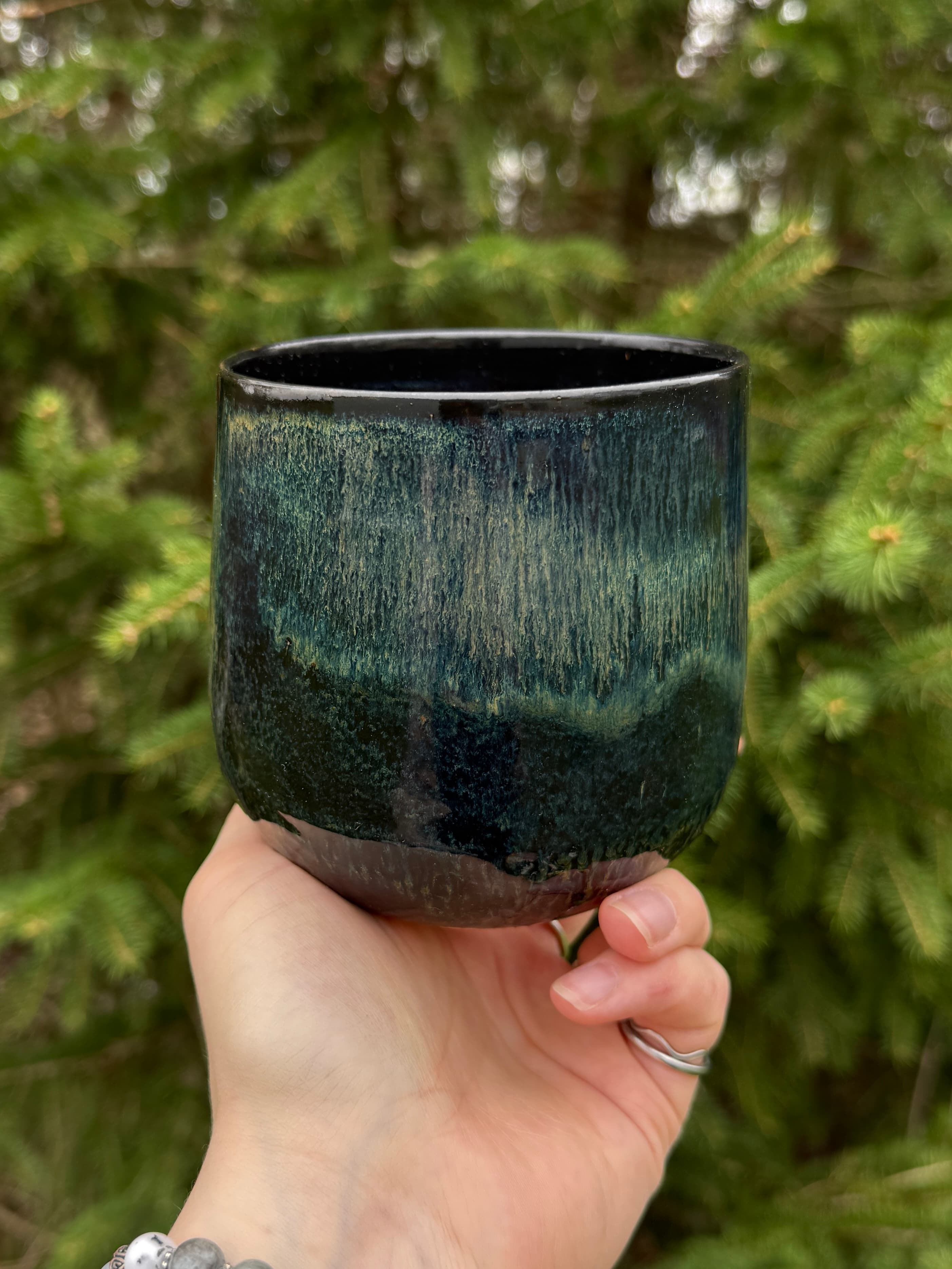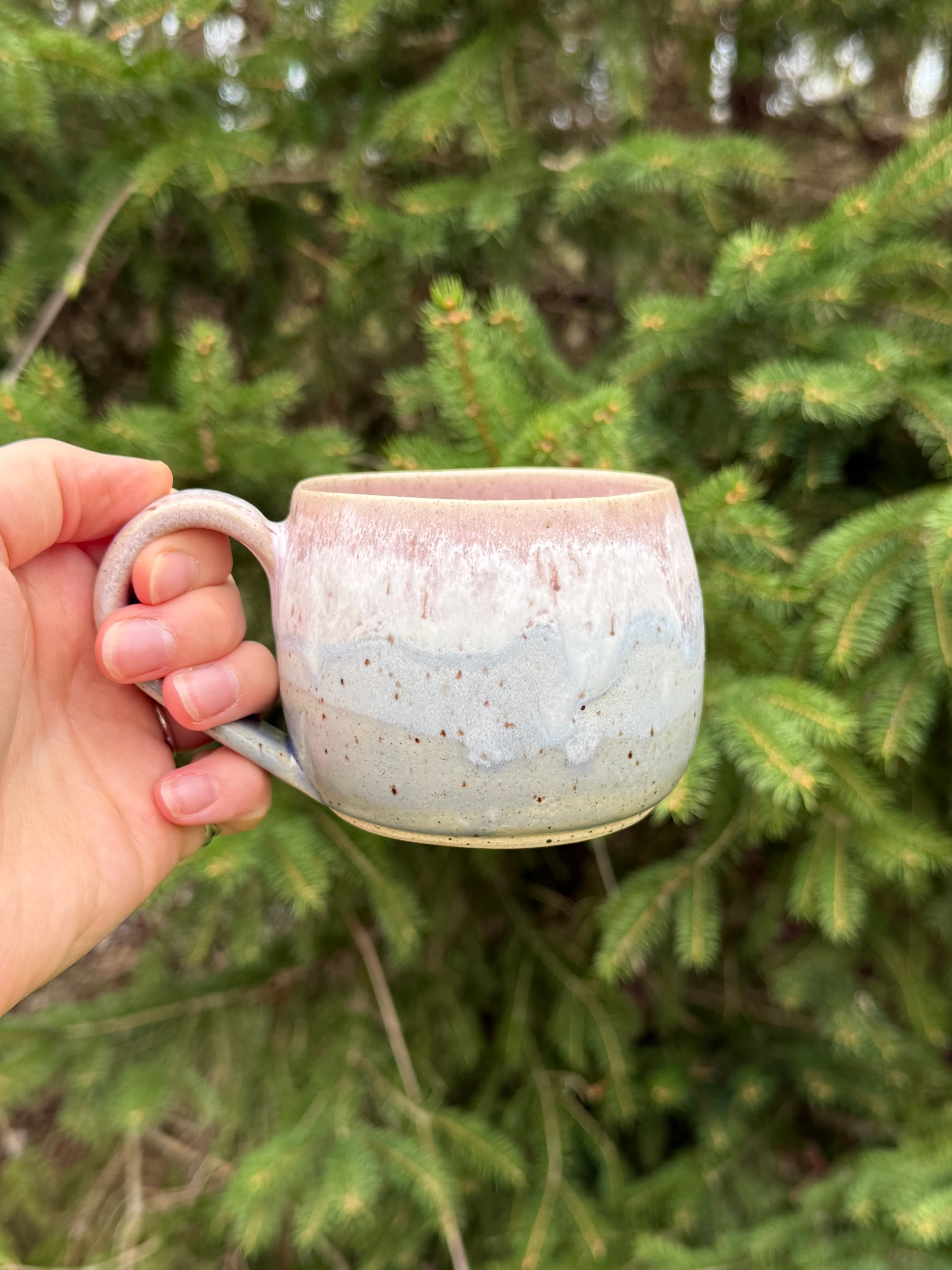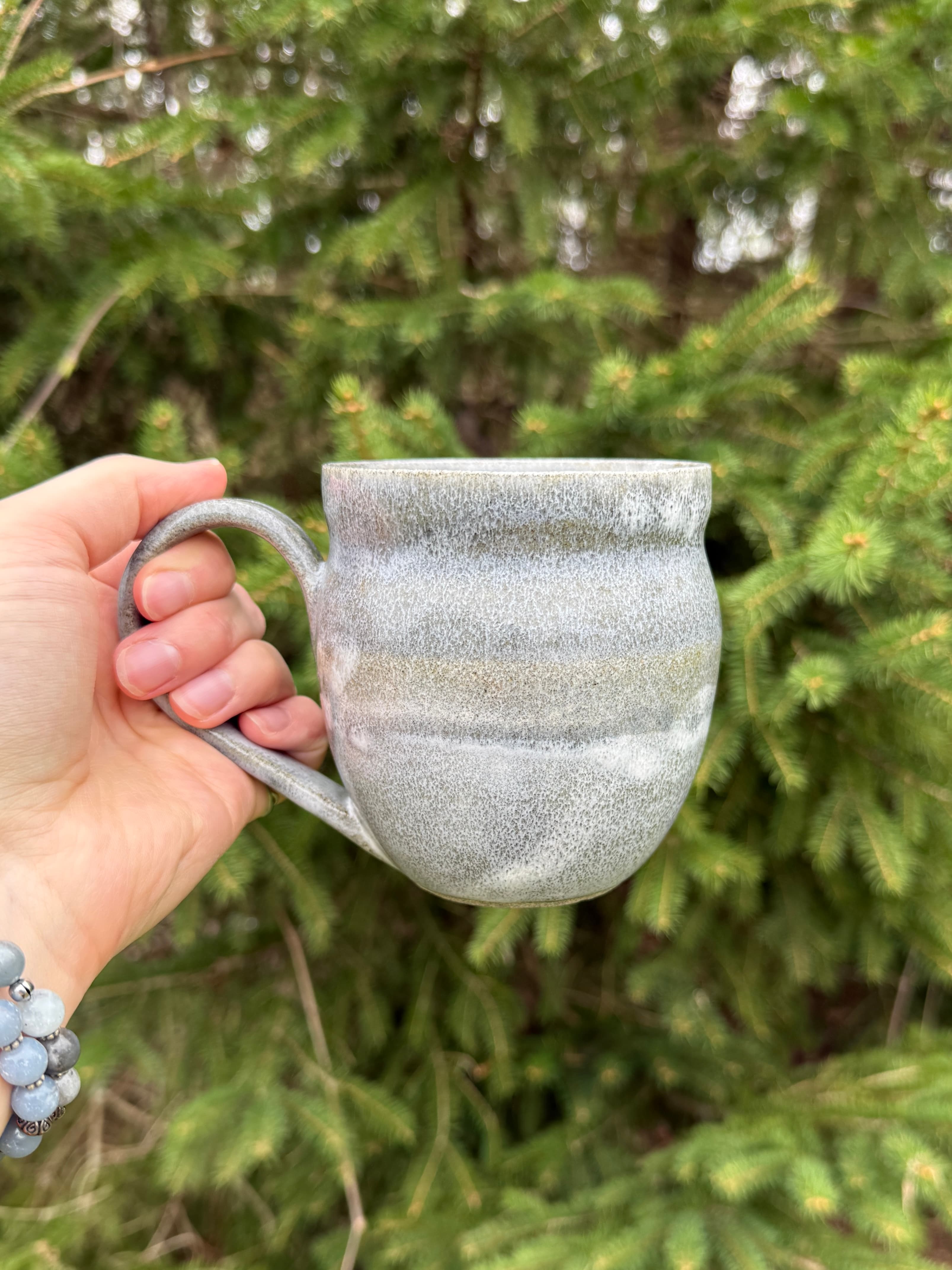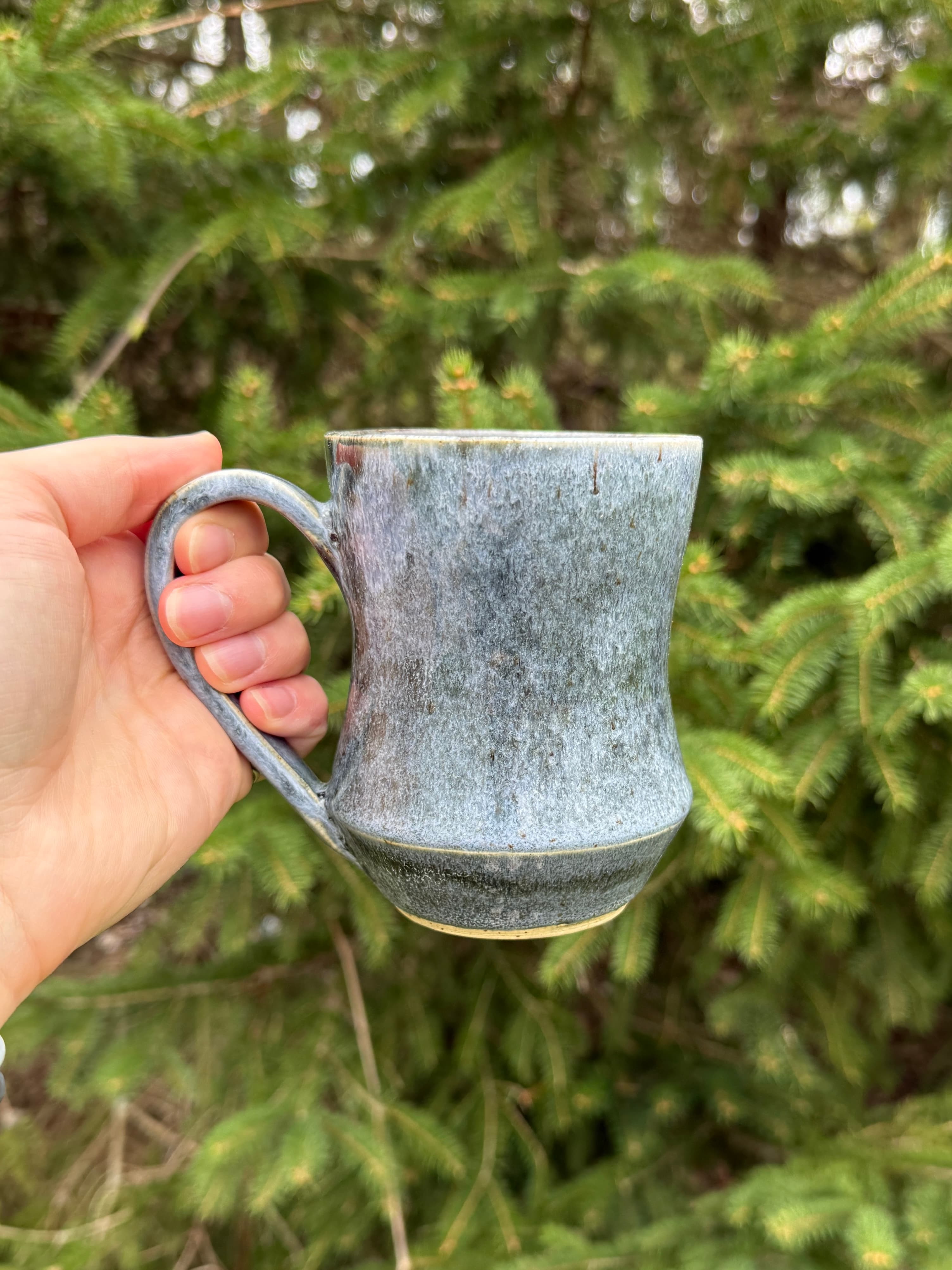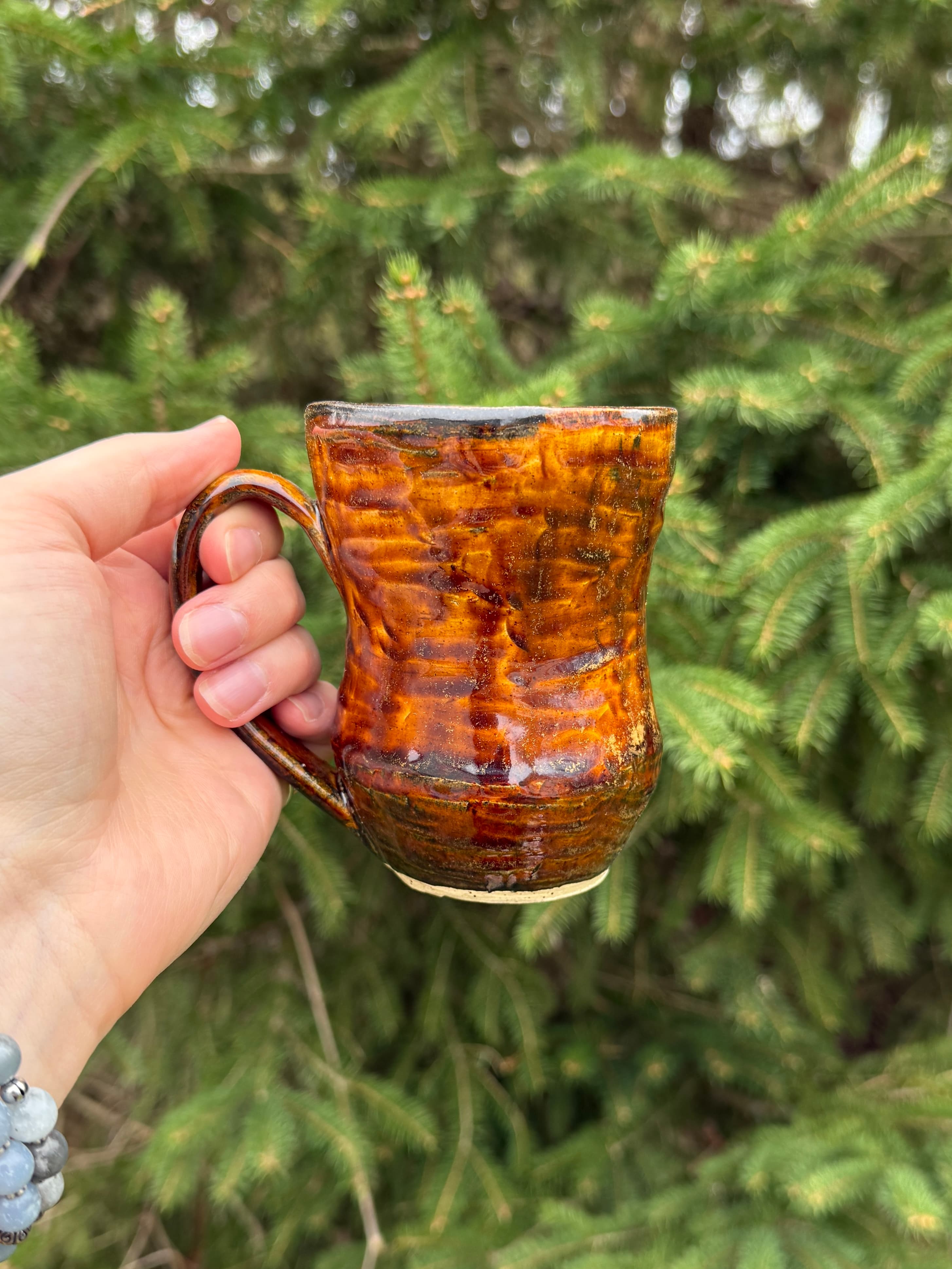 Carved mug on speckled stoneware glazed with a gorgeous honey amber colour. This one really transports me outside and reminds me of sitting on a log in the middle of the forest.